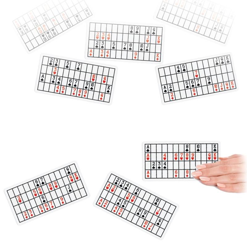 El mago le pide a un espectador que simplemente PIENSE en una carta cualquiera de las 52 posibles que tiene una baraja de poker. Después coloca sobre la mesa ocho tarjetas semi transparentes con imágenes de cartas aleatorias impresas en cada tarjeta. El mago se da media vuelta y pide al espectador que coja todas las tarjetas donde se encuentre su carta elegida y se las guarde en su bolsillo para que el mago no pueda verlas. Cuando el mago se da la vuelta toma las tarjetas restantes de la mesa y tras un momento de concentración revela la carta pensada por el espectador… COMO LO SUPO.